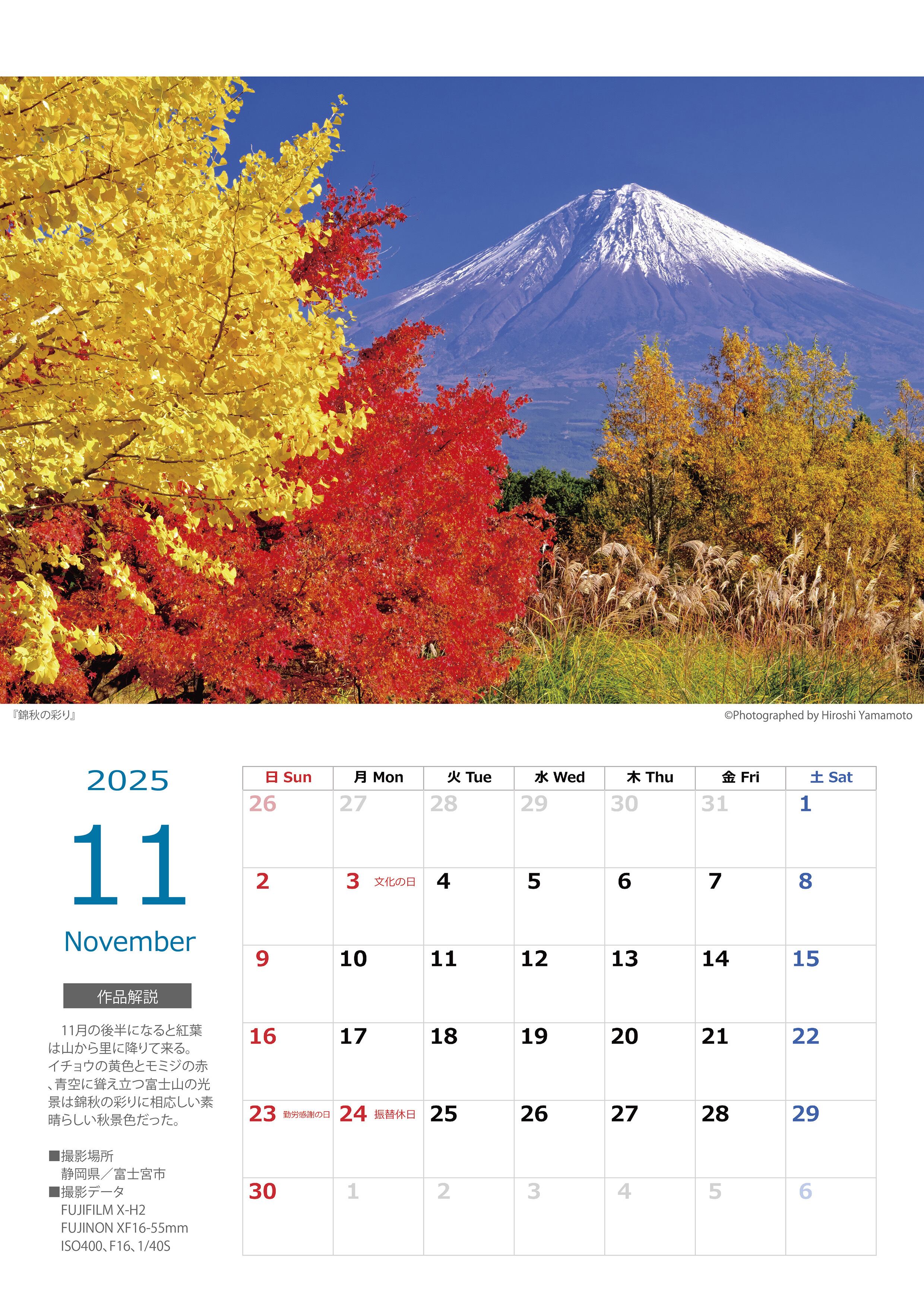 2025年富士山カレンダー(壁掛けタイプ)